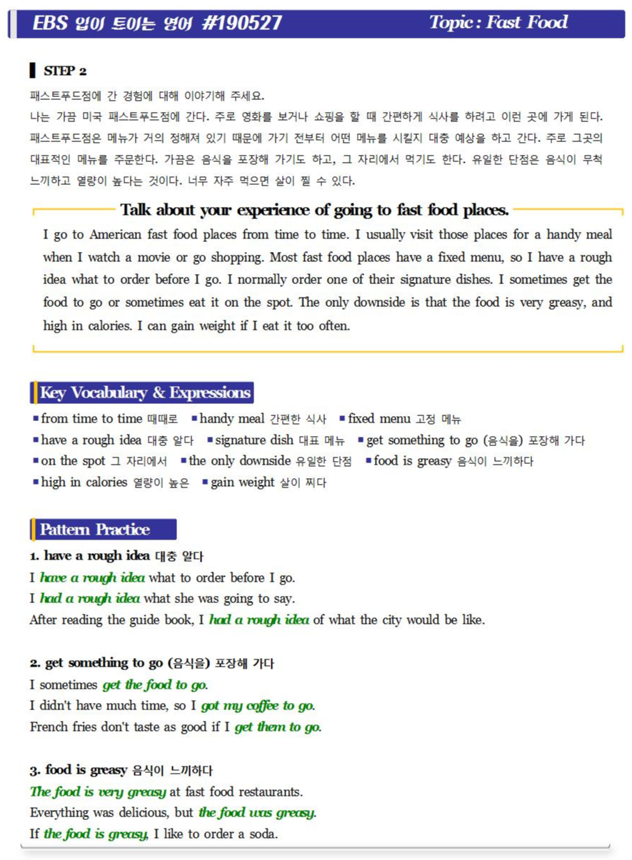 입이트이는영어(입트영)_스크립트(script)_2019년 5월27일#Fast Food_패스트푸드