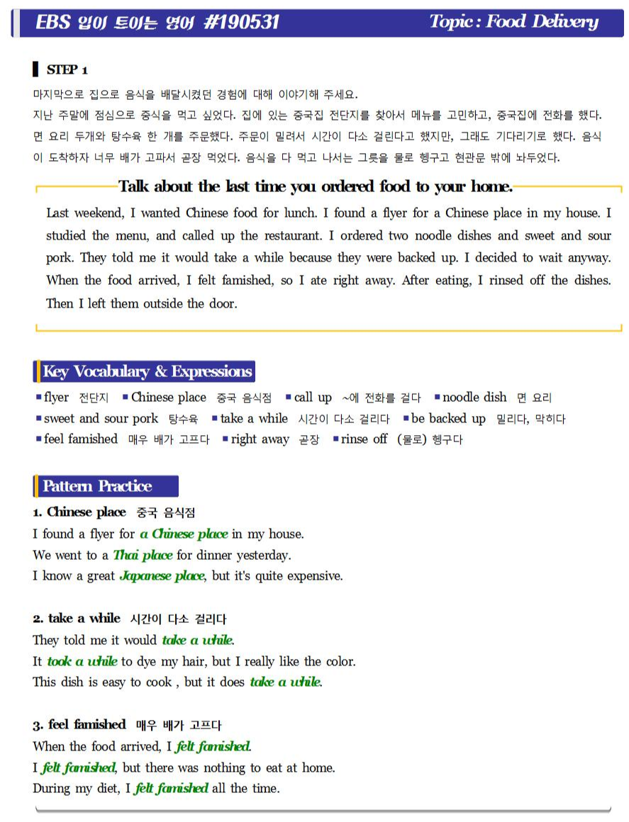 입이트이는영어(입트영)_스크립트(script)_2019년 5월31일#Food Delivery